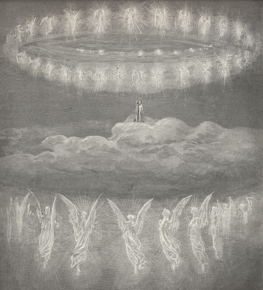 Of sempiternal roses, bending, wreath’d