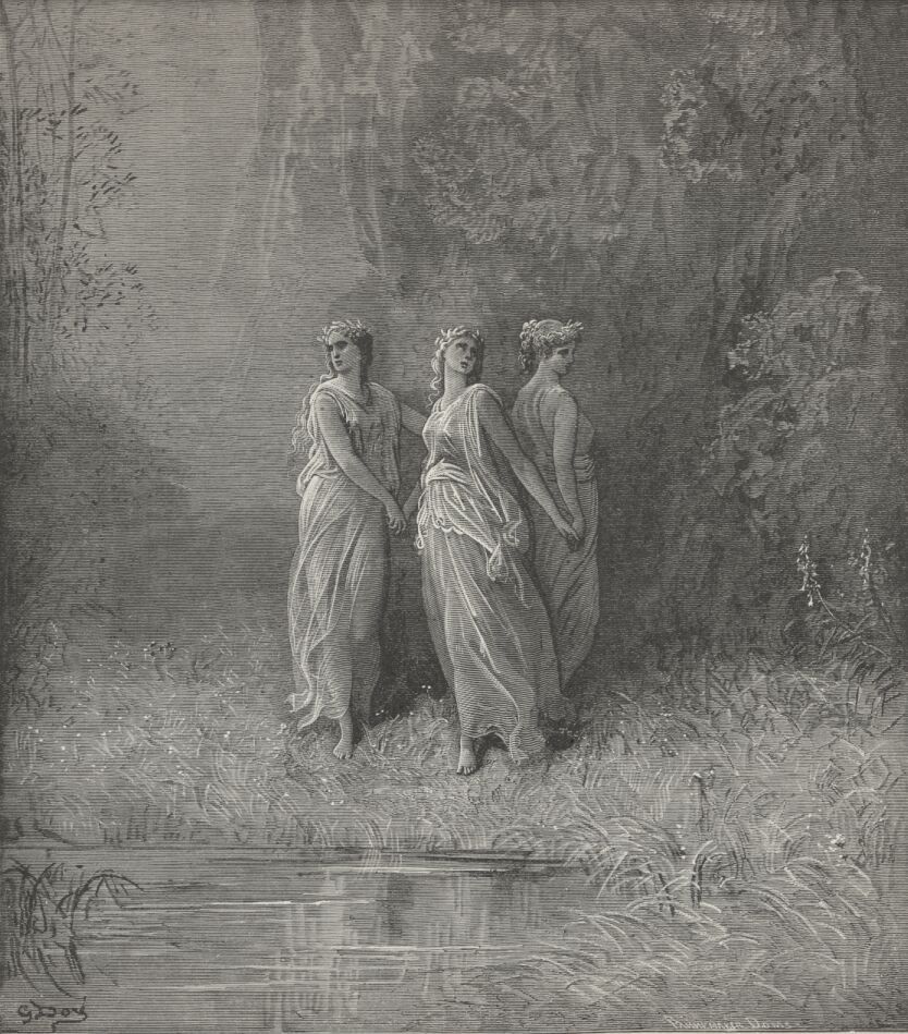 Mysterious of all-seeing Jove. Three nymphs